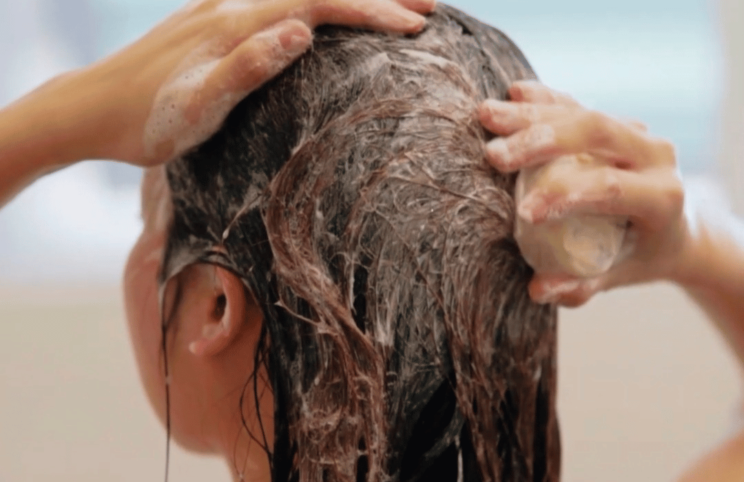 2. Apply the shampoo bar to the wet hair to get more lather